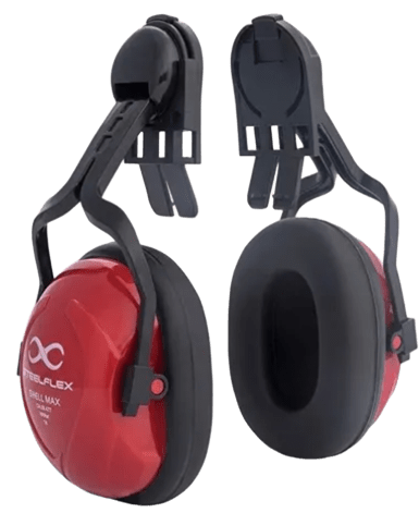 Protetor auditivo “tipo concha" desenvolvido em HDPE/ABS, composto de duas conchas ajustáveis com isolamento acústico na parte interna, possui bordas almofadadas revestidas em poliuretano. As conchas são fixadas à duas hastes plásticas móveis que Se encaixam no capacete. Produto livre de componentes metálicos.