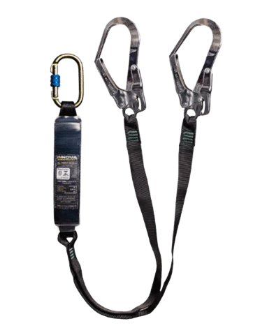 - Talabarte de segurança modelo duplo para proteção contra queda, confeccionado em fita tubular de poliéster de alta resistência, desenvolvida com tramas menos compactadas que auxilia na absorção de energia mantendo a resistência à abrasão e um toque mais macio;